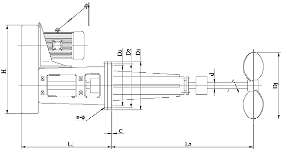 SD型为采用一对螺旋齿轮传动侧入式搅拌机,适用于配上推进式搅拌器或旋桨式搅拌器,对低粘度物料进行调和。SD型为固定插入型,适用于大型储罐及脱硫吸收塔浆池等场合。