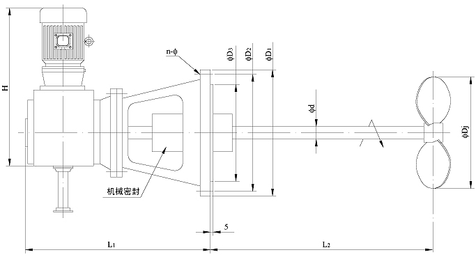 本公司设计的侧搅拌机由于使用同步带传动,使中心距大为缩小,外形较为紧凑,传动效率高,传动比准确、平稳、噪声小、无滑差、又节能。轴封采用适应于液体介质的补偿型机械密封212型和适应于含固体颗粒介质密封的318B型机械密封。采用特殊的轴联接设计,在不拆卸整机的情况下能方便地修理、更换机械密封。