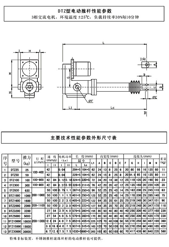 我公司生产的DT、DTZ系列电动推杆,推力从25KG~5000KG,速度:42mm/s,50mm/s,84mm/s,100mm/s等,各系列不同行程、速度客户可以自己选择,为了实现自动化控制可以配伺服电机、步进电机等,满足客户的要求。此产品广泛应用于电力、冶金、煤炭、等行业。