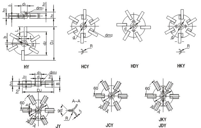 半圆弧圆盘涡轮式-HY、半圆弧可拆圆盘涡轮式-HCY、半圆弧对开圆盘涡轮式-HDY、半圆弧可拆对开圆盘涡轮式-HKY、箭叶圆盘涡轮式-JY、箭叶可拆圆盘涡轮式-JCY、箭叶对开圆盘涡轮式-JDY、箭叶可拆对开涡轮式-JKY