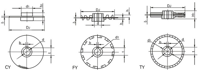 平齿形圆盘涡轮式CY、翻齿形圆盘涡轮式FY、贴齿形圆盘涡轮式TY