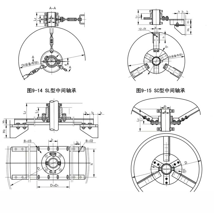 注:重量仅供参考,与设备内径D有关,SD适用于中间轴承位置高度在上封头范围的情况,用户提高高度位置及封头图形,本公司可以供应定位杆拉杆构件。
