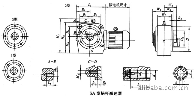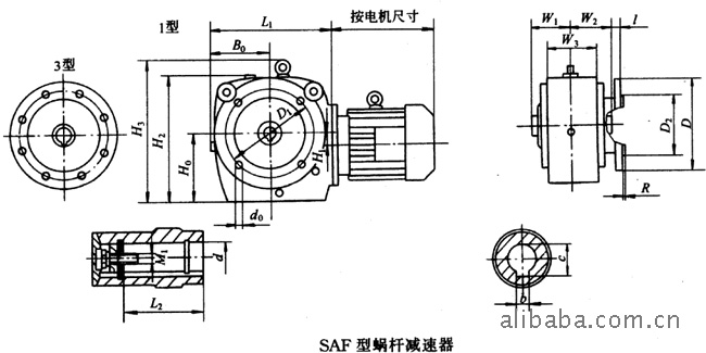 SAF型——轴装法兰式斜齿蜗杆减速机。